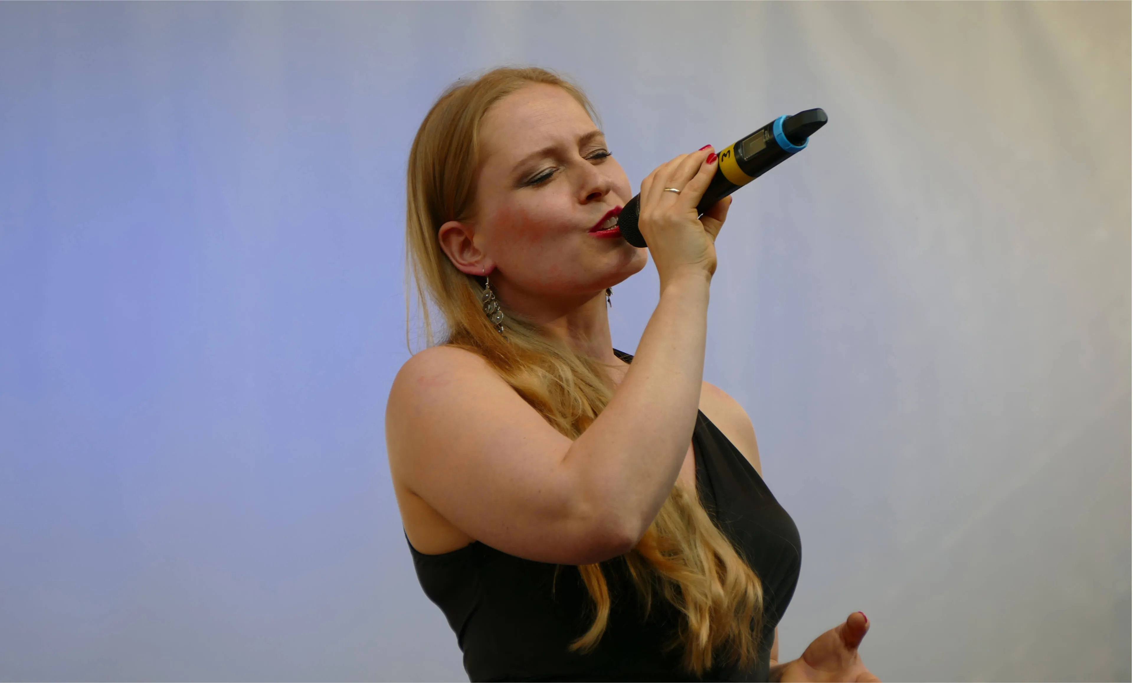 Sie bringt Moderationserfahrung, Schauspieltalent und Coaching-Erfahrung mit unterschiedlichsten Menschen, Chören und Netzwerken mit. Und natürlich eine Stimme, die den unterschiedlichsten Genres dient.